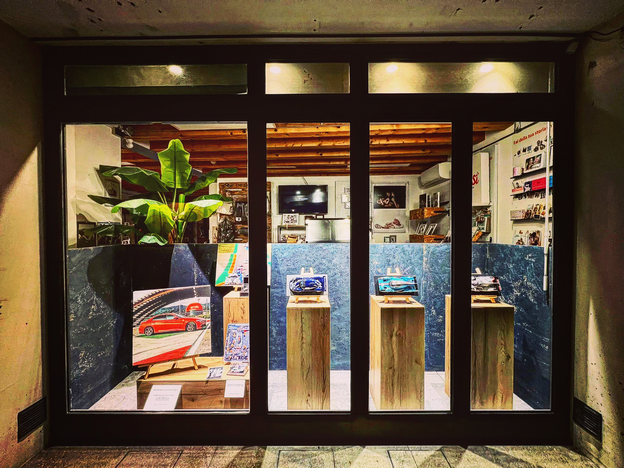 In vetrina anche una stampa su tela, soggetto Alfa Romeo Giulia Quadrifoglio (collezione TheRaceMode) realizzata da Tuzza, stampa foto Alfa Romeo Giulietta TCR By Romeo Ferraris realizzata da Tuzza, modellino 1:43 Alfa Romeo Giulietta by Romeo Ferraris della Spark (collezione TheRaceMode).